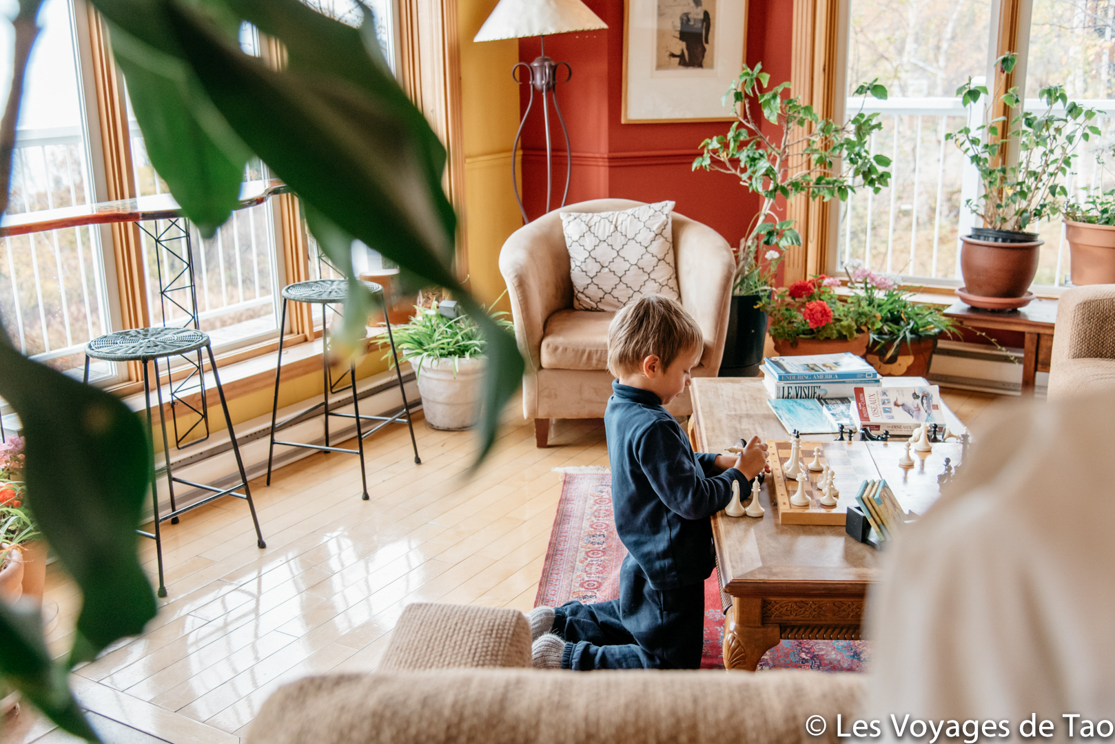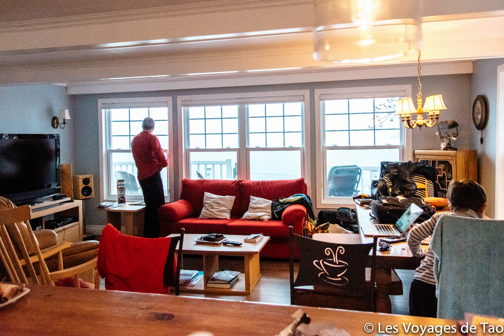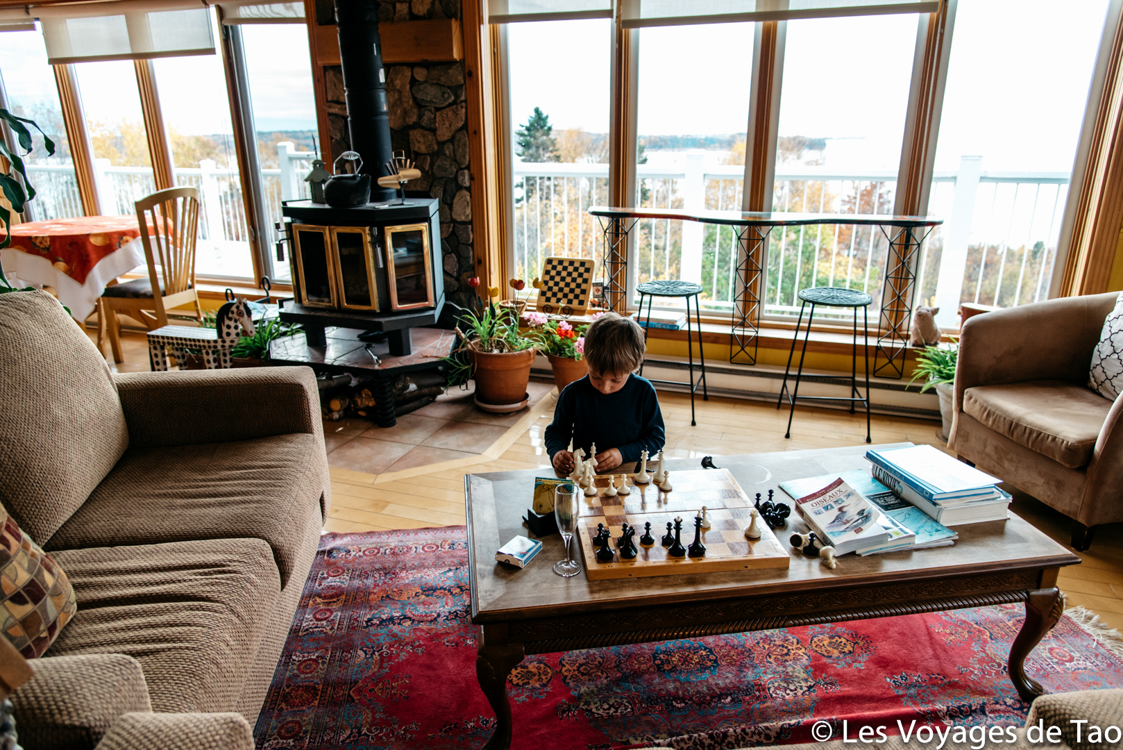 Hébergement proche de Baie St paul, 1 nuit : Auberge Cap aux Corbeaux. Magnifique vue, ambiance très chaleureuse. Il y a petite cuisine, possibilité de se faire à manger (c’est ce qu’on nous avons fait le soir car nous n’avions pas envie de ressortir au restaurant). Dans le salon, on se sentait comme chez nous, Tao a appris à jouer aux échecs là bas, une belle adresse pour une famille.
