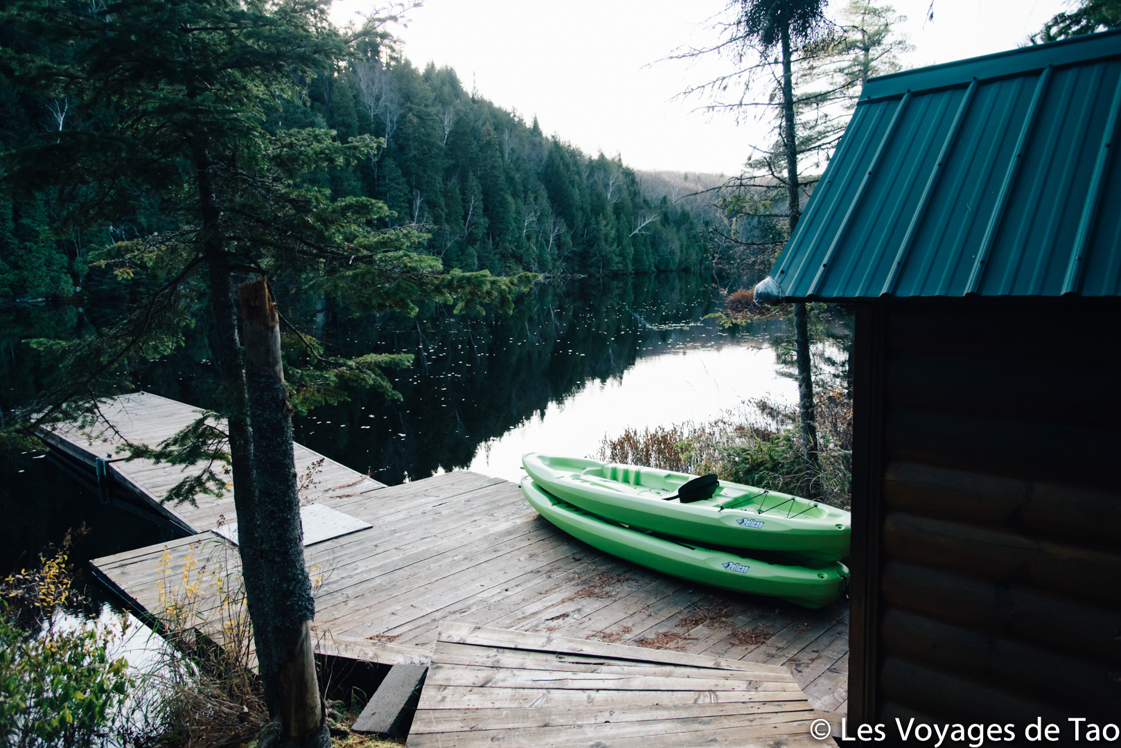 Nous sommes montés jusqu’à Saguenay pour passer le fleuve et plusieurs heures aprés être parti de Ste Rose du Nord nous voilà arriver dans l’hébergement coup de coeur de tous mes voyages ! Un chalet comme on en rêve, il s’appelle « le Havre de Paix » et à peine arriver on comprend pourquoi.