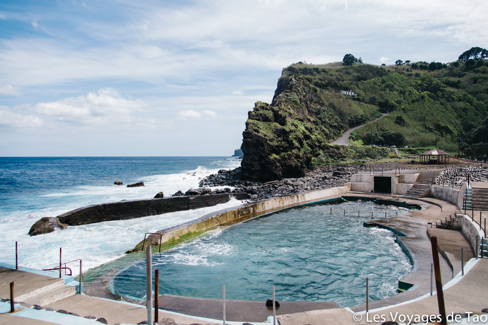 Nous avons consacré une journée pour nous rendre aux thermes de Ferraria, il y a deux options pour se baigner (nous avons fait les deux). Une baignade dans l’océan, oui oui, dans une eau chaude ! Il peut y avoir pas mal de monde mais l’expérience vaut le coup. Il y a des cordes pour s’accrocher quand il y a trop de vagues. N’ y aller pas à marée basse sinon vous allez vous raper sur les rochers. C’est surprenant car tant que vous êtes dans la zone proche du bord c’est chaud, mais dès que vous nagez vers le large l’eau devient très froide !