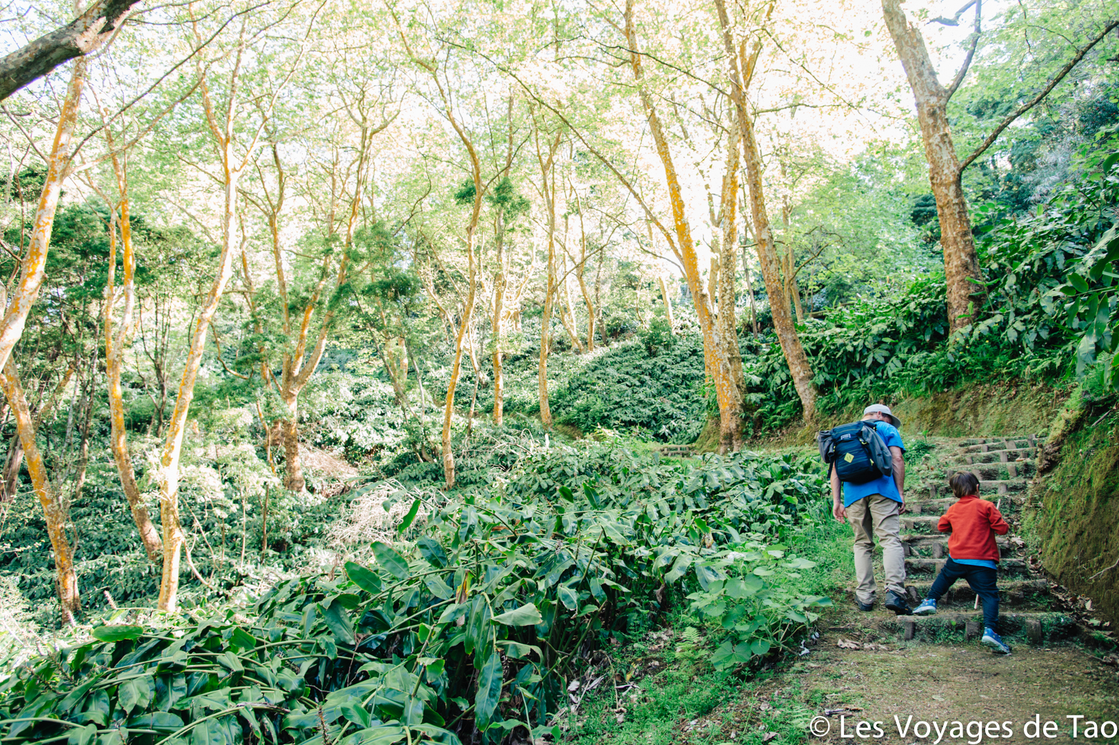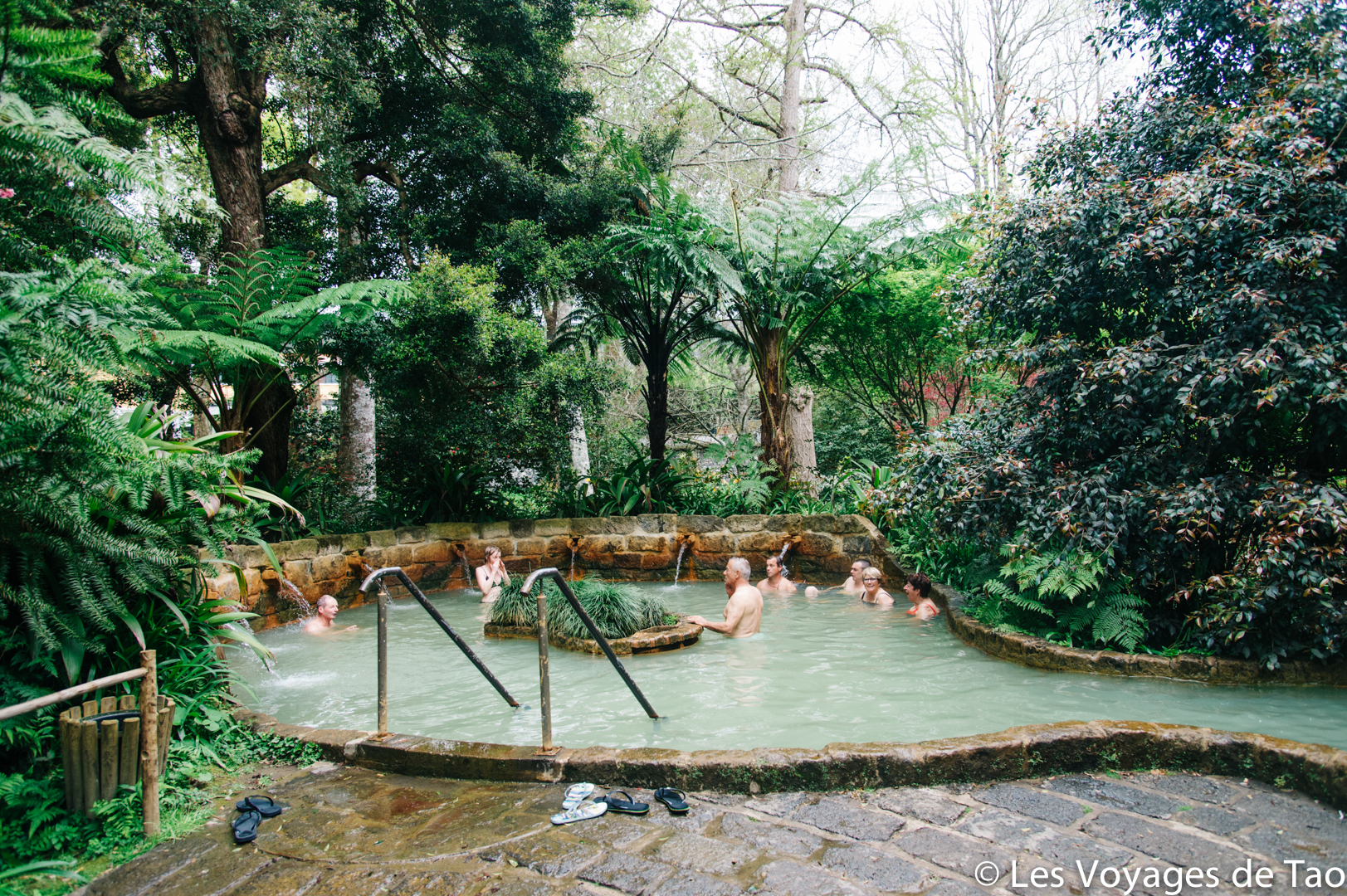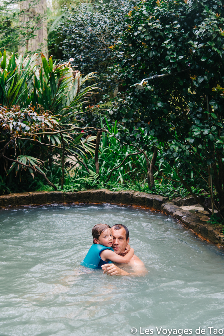 On a adoré l’endroit, il y a plusieurs bassins de 28 à presque 40 degrés. Un endroit unique au milieu des fougères. Le bassin le moins chaud est une grande vasque avec une cascade, c’est magique de se baigner dans cet endroit, puis on descends dans les bassins aménagés plus chauds. Tao nous en parle encore !!!!