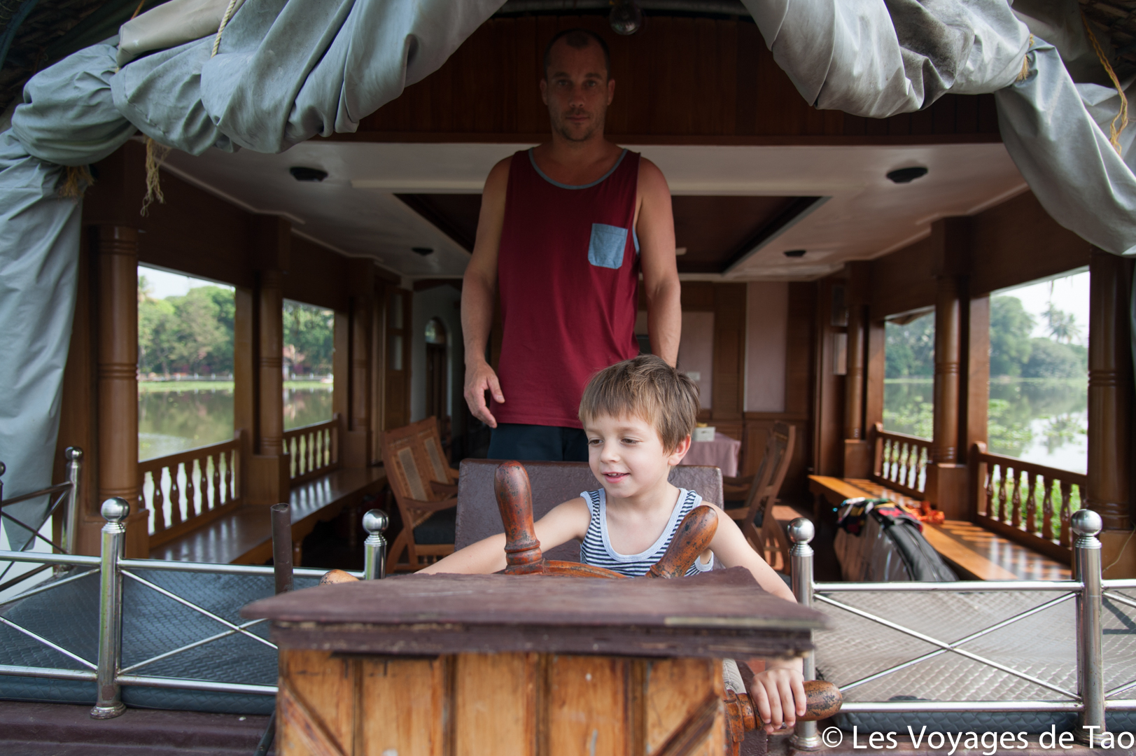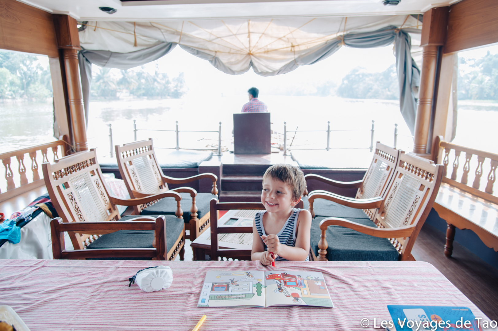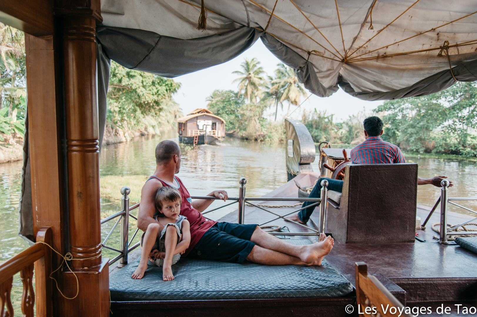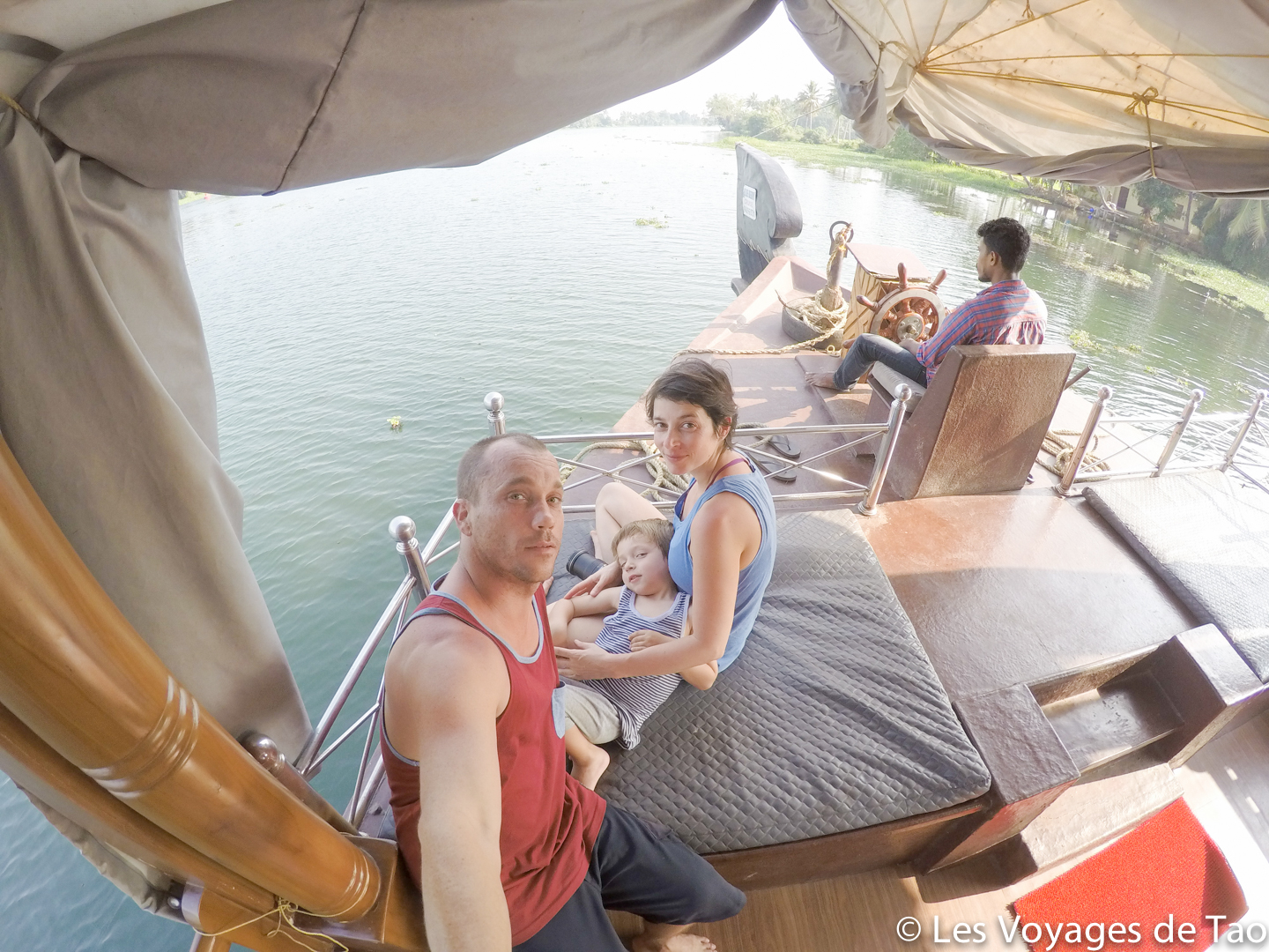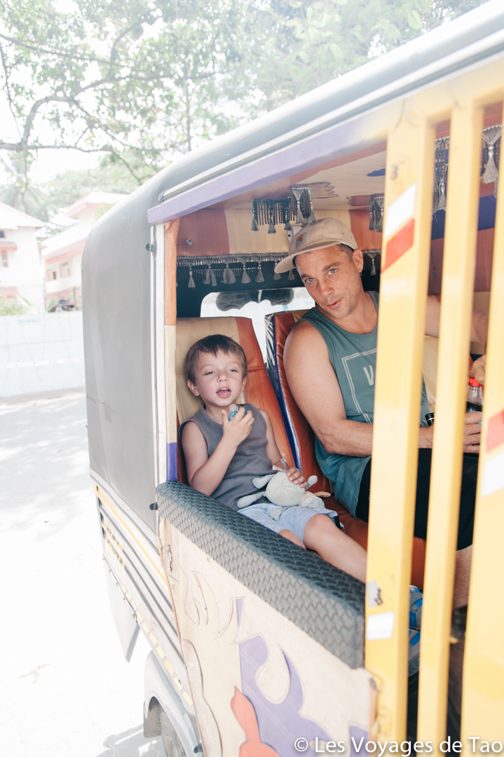 Tao s’est occupé sur le bateau et il a adoré, il a observé les paysages, joué, s’est reposé dans la cabine. Les paysages sont magnifiques on ne s’en lasse pas, c’est reposant, on voit la vie des gens dans ces canaux, les petits enfants qui prennent des petites barques pour aller à l’école… ce fut vraiment un de nos meilleurs souvenirs. Ce voyage en famille dans le Kerala a été apprécié par tous.
