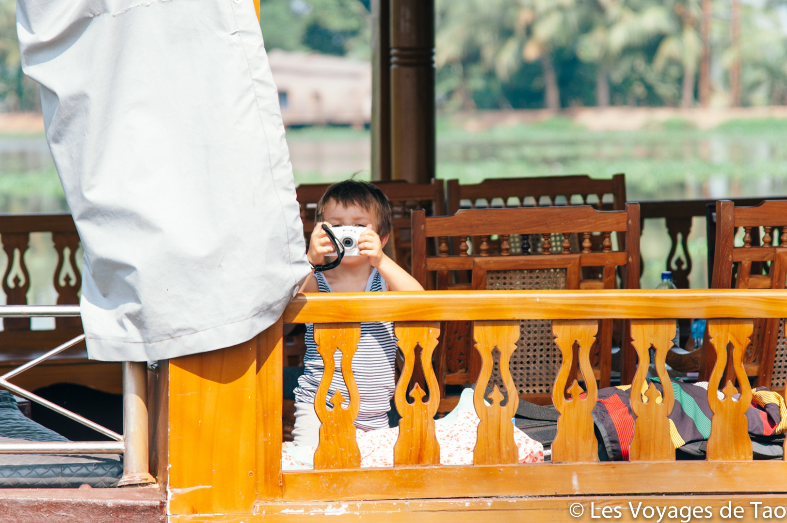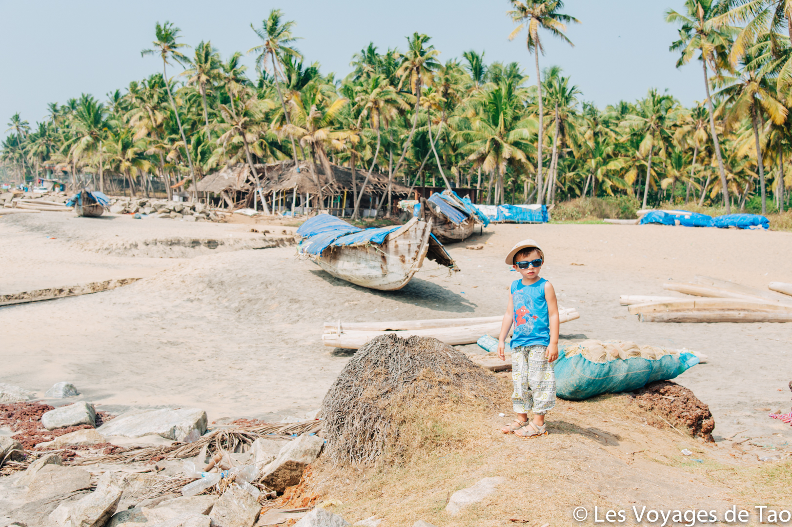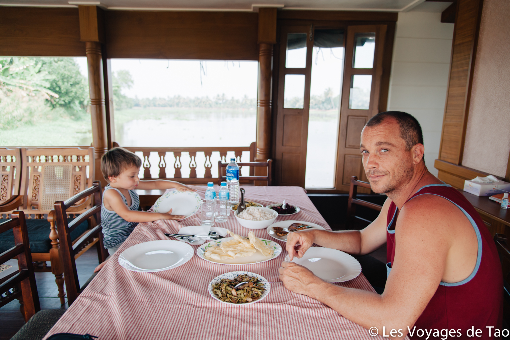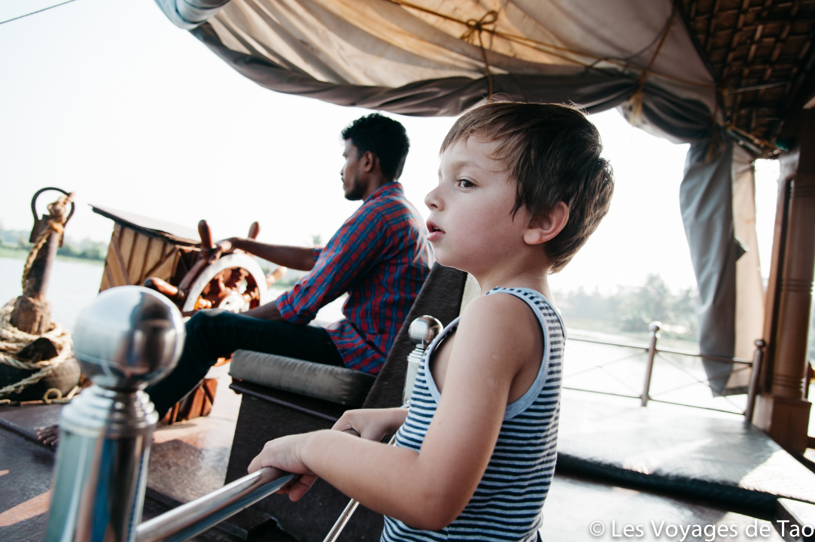 Tao s’est occupé sur le bateau et il a adoré, il a observé les paysages, joué, s’est reposé dans la cabine. Les paysages sont magnifiques on ne s’en lasse pas, c’est reposant, on voit la vie des gens dans ces canaux, les petits enfants qui prennent des petites barques pour aller à l’école… ce fut vraiment un de nos meilleurs souvenirs. Ce voyage en famille dans le Kerala a été apprécié par tous.