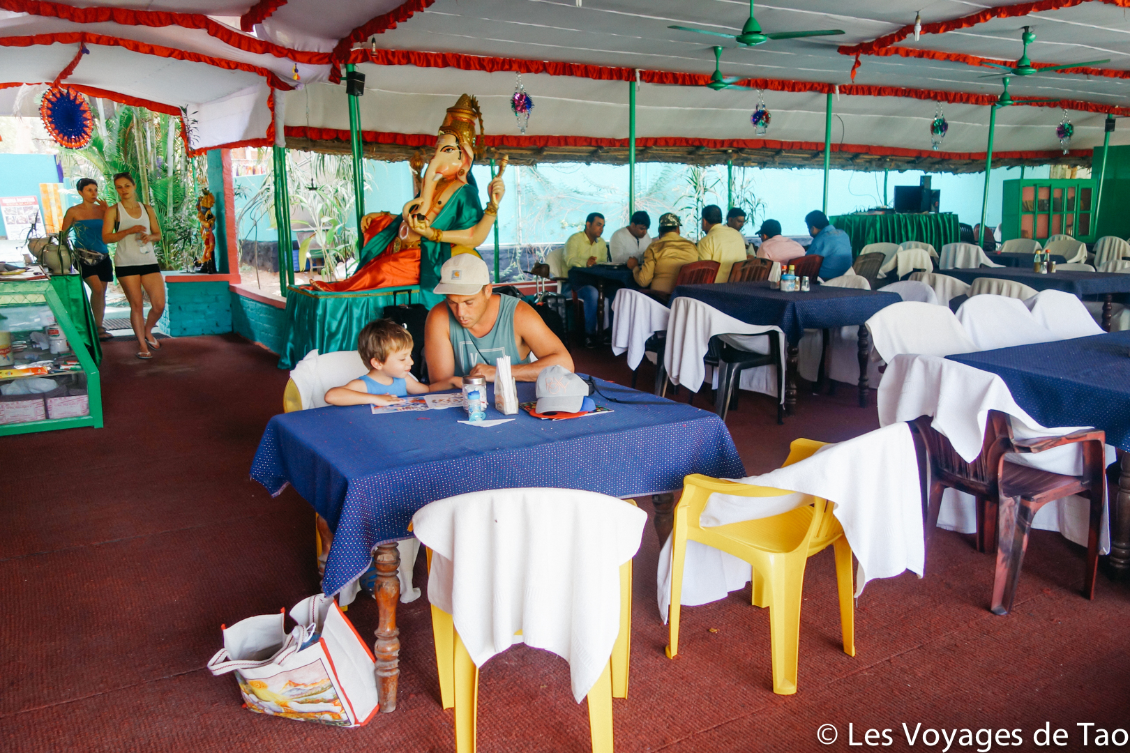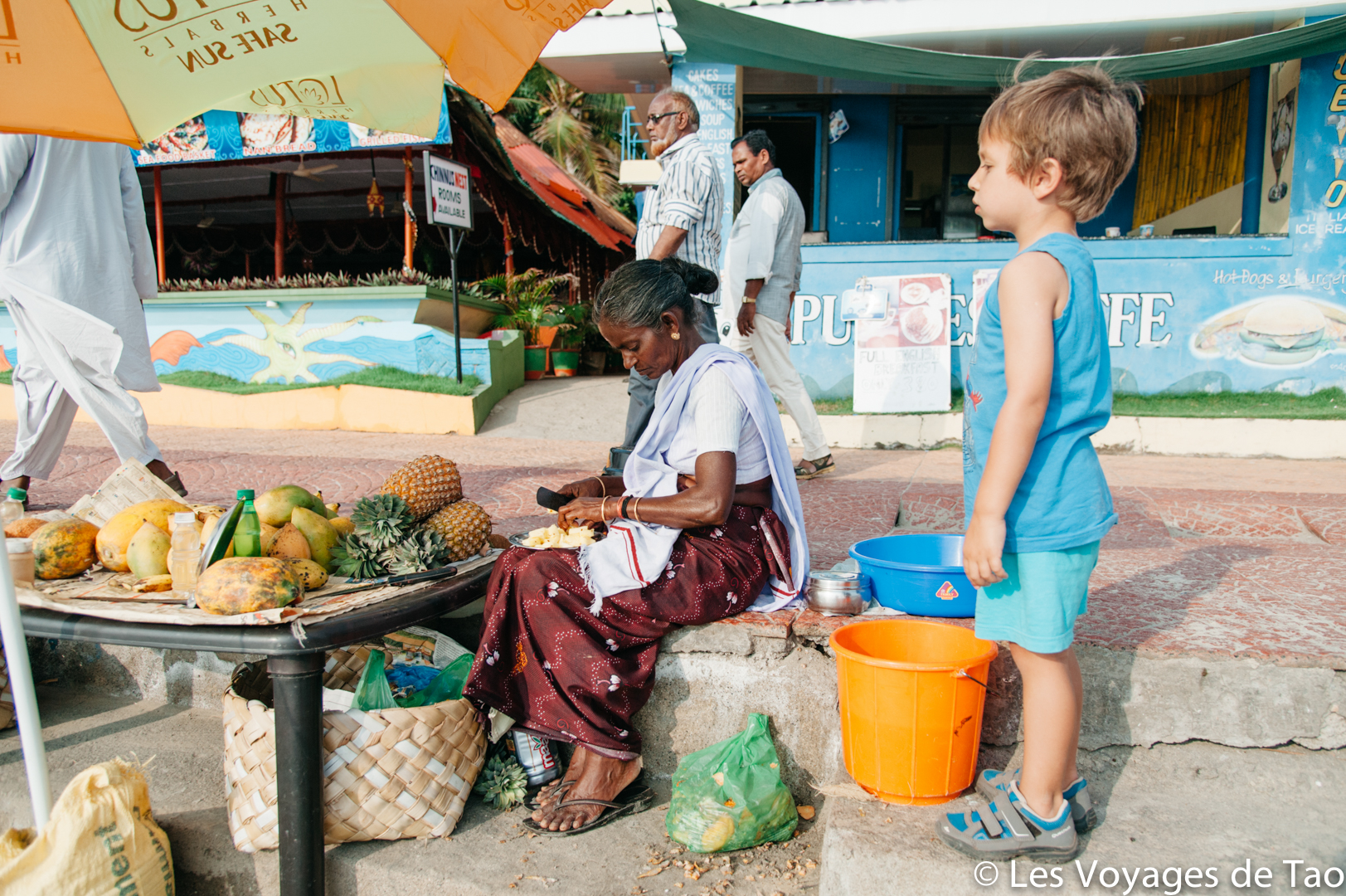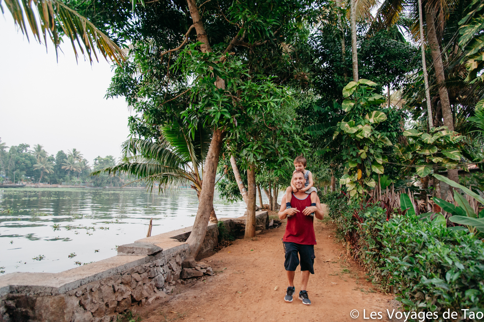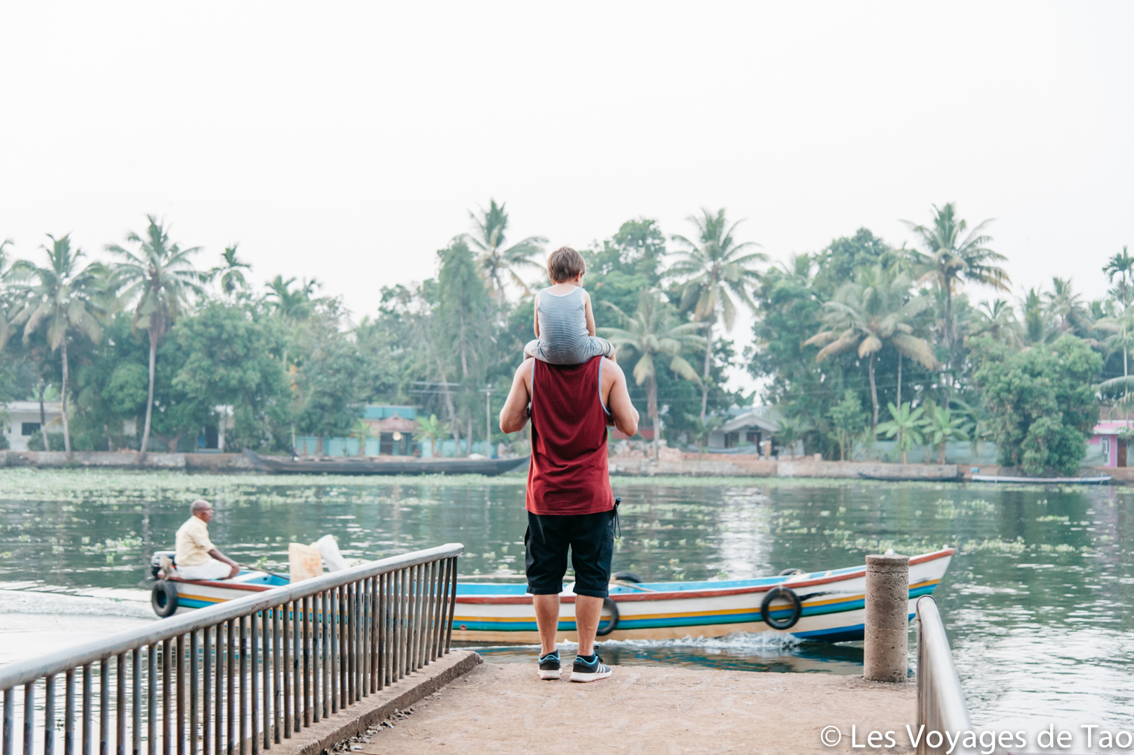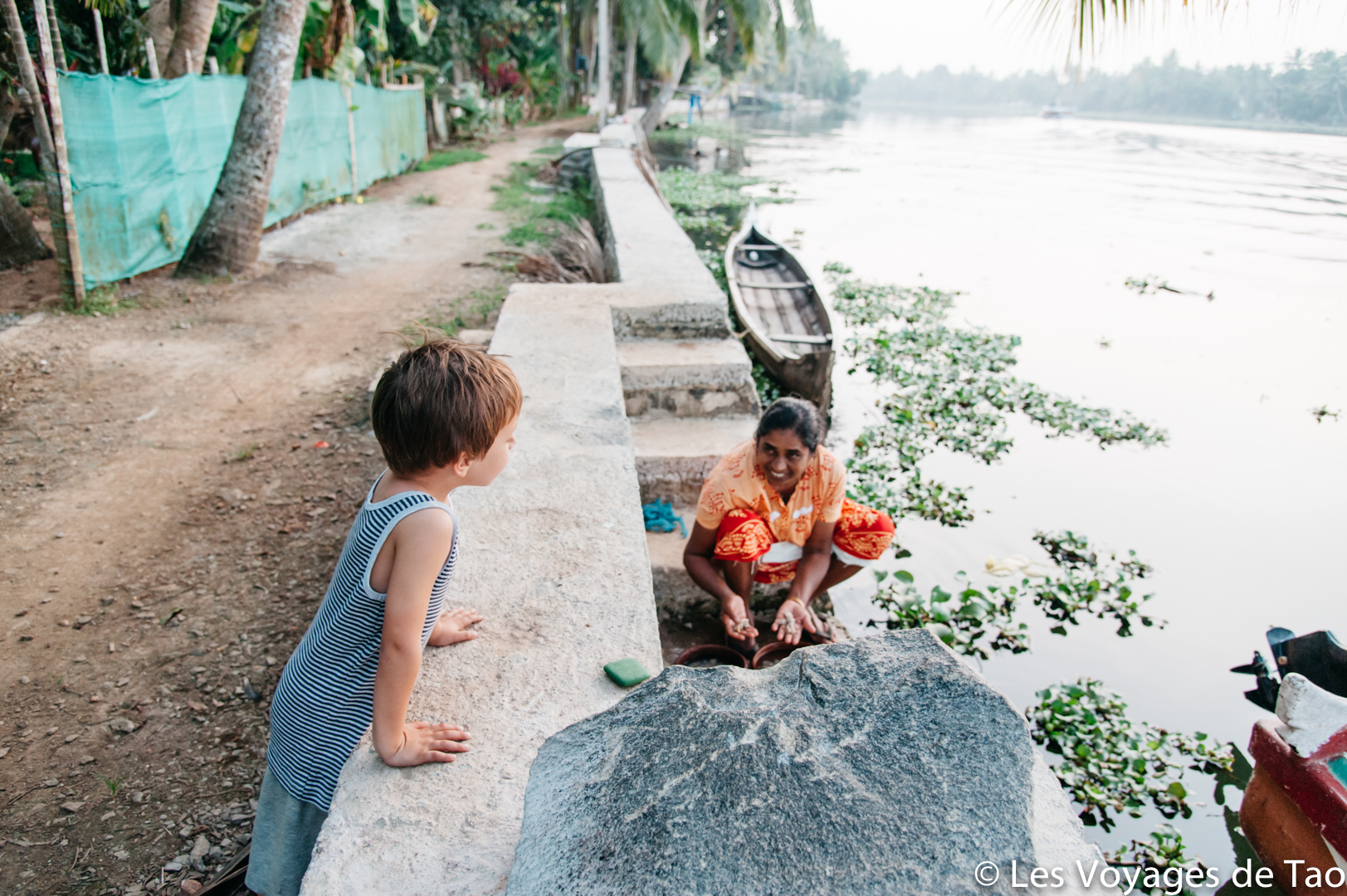 Tao s’est occupé sur le bateau et il a adoré, il a observé les paysages, joué, s’est reposé dans la cabine. Les paysages sont magnifiques on ne s’en lasse pas, c’est reposant, on voit la vie des gens dans ces canaux, les petits enfants qui prennent des petites barques pour aller à l’école… ce fut vraiment un de nos meilleurs souvenirs. Ce voyage en famille dans le Kerala a été apprécié par tous.