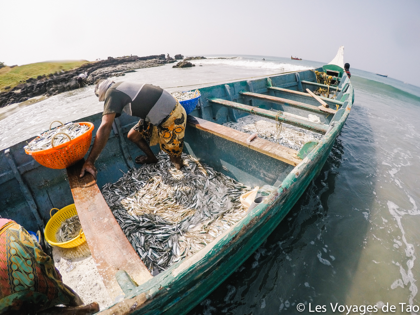 A 20 min à pied je conseille de faire la promenade allant de Odayam beach à Edava Beach, c’est juste magnifique et c’est là où on peut espérer trouver quelques vagues, oui en Inde on peut un peu surfer, c’était super. Edava Beach est une plage de pêcheur, on surfe au milieu des bateaux de pêcheurs qui rentrent avec leurs sardines, que de beaux souvenirs. Après nous allions surfer en Tuk Tuk, cela prenait 5/10 minutes de trajet.