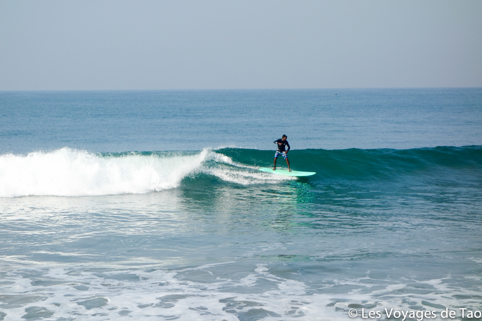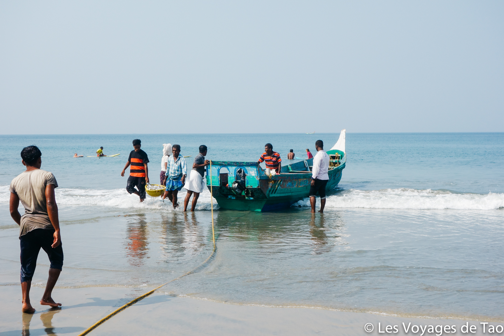 Kovalam est apprécié par les surfeurs, Julien a pu en faire, ambiance super à l’eau.