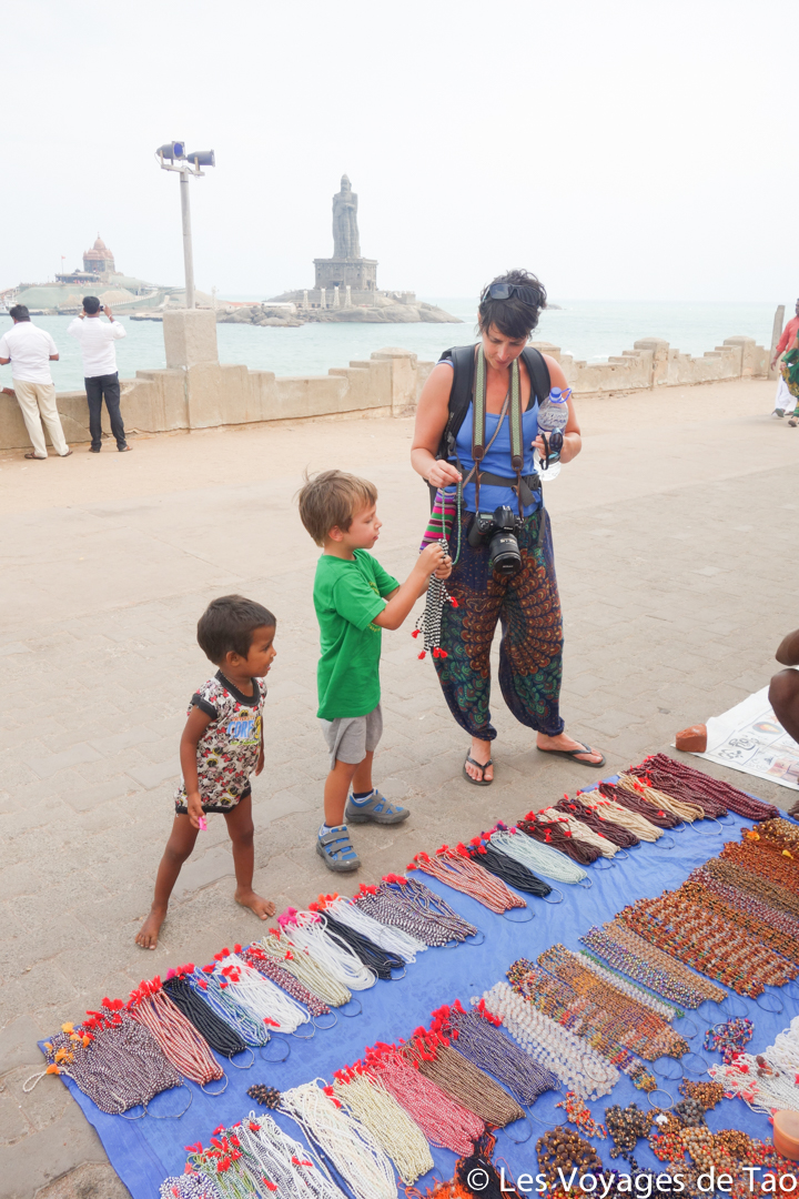 Le coup de coeur revient à Kanaykumari qui se trouve à la pointe de l’Inde et où trois mers se rejoignent, c’est un lieu de pèlerinage, inutile de vous dire qu’on en a pris pleins les yeux, Tao était aussi émerveillé par tant de couleurs.