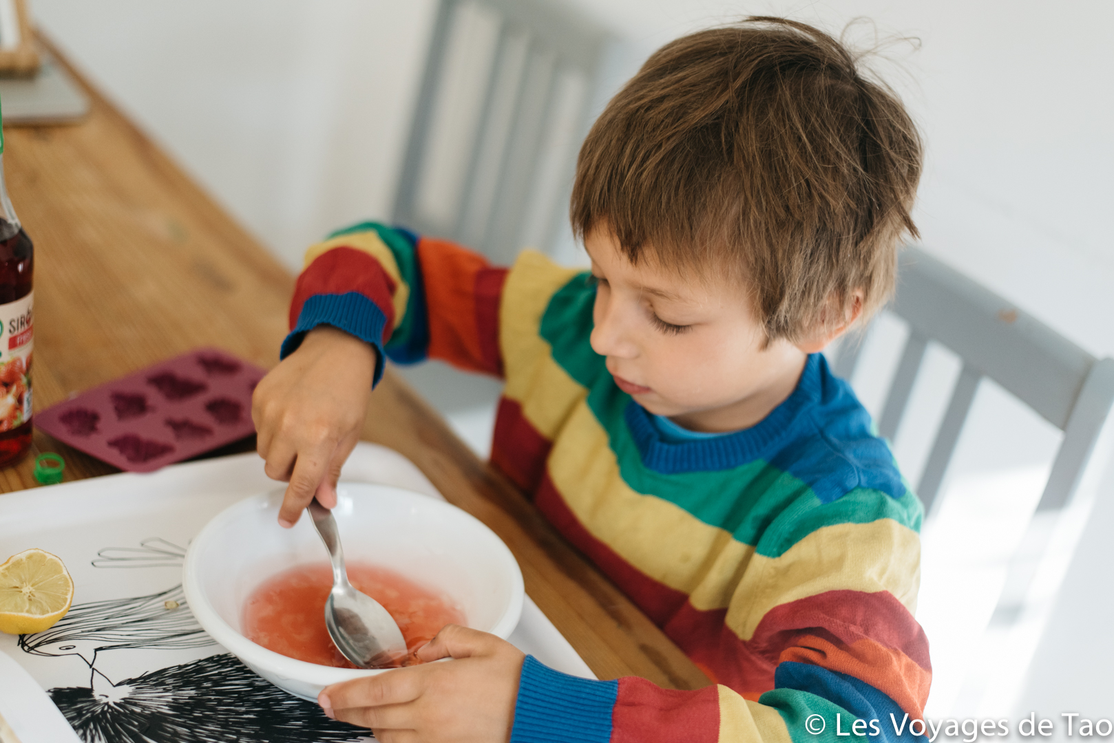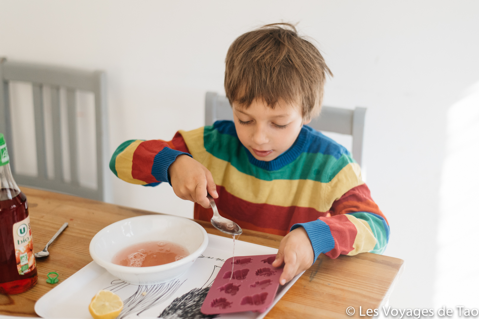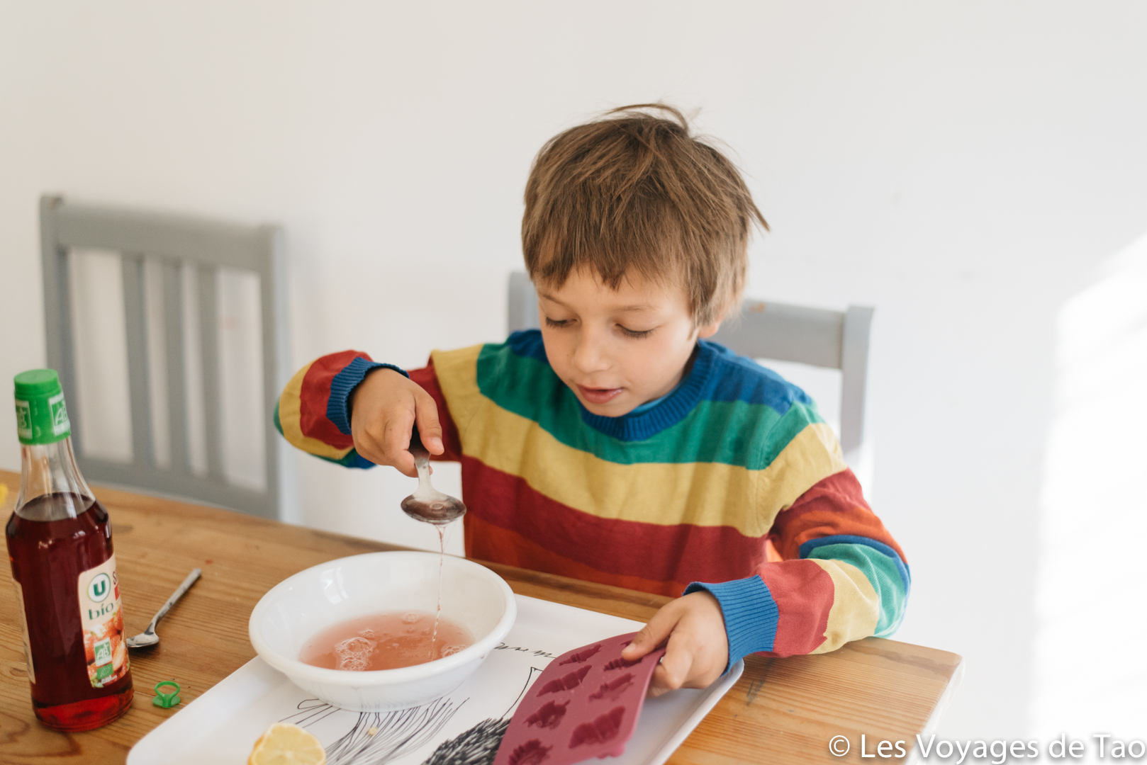 Le mercredi quand je travaille pas et que je peux garder Tao, j’essaye de trouver une recette rigolote à faire, nous voilà donc en cuisine pour préparer des bonbons maison.