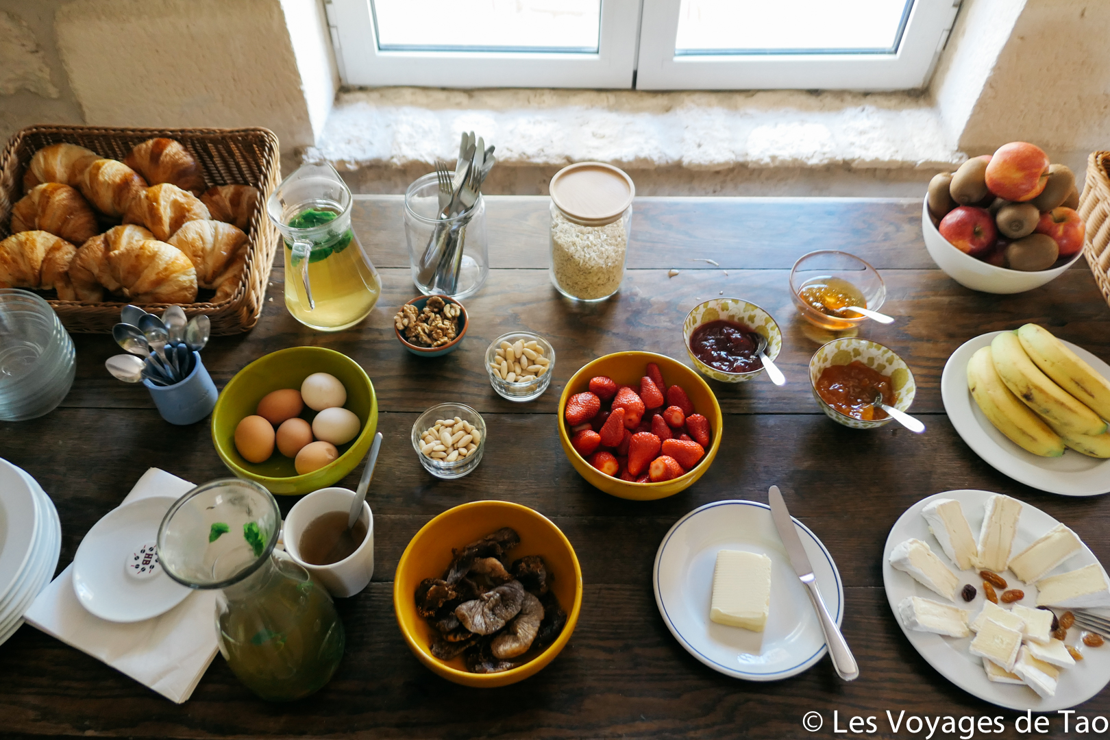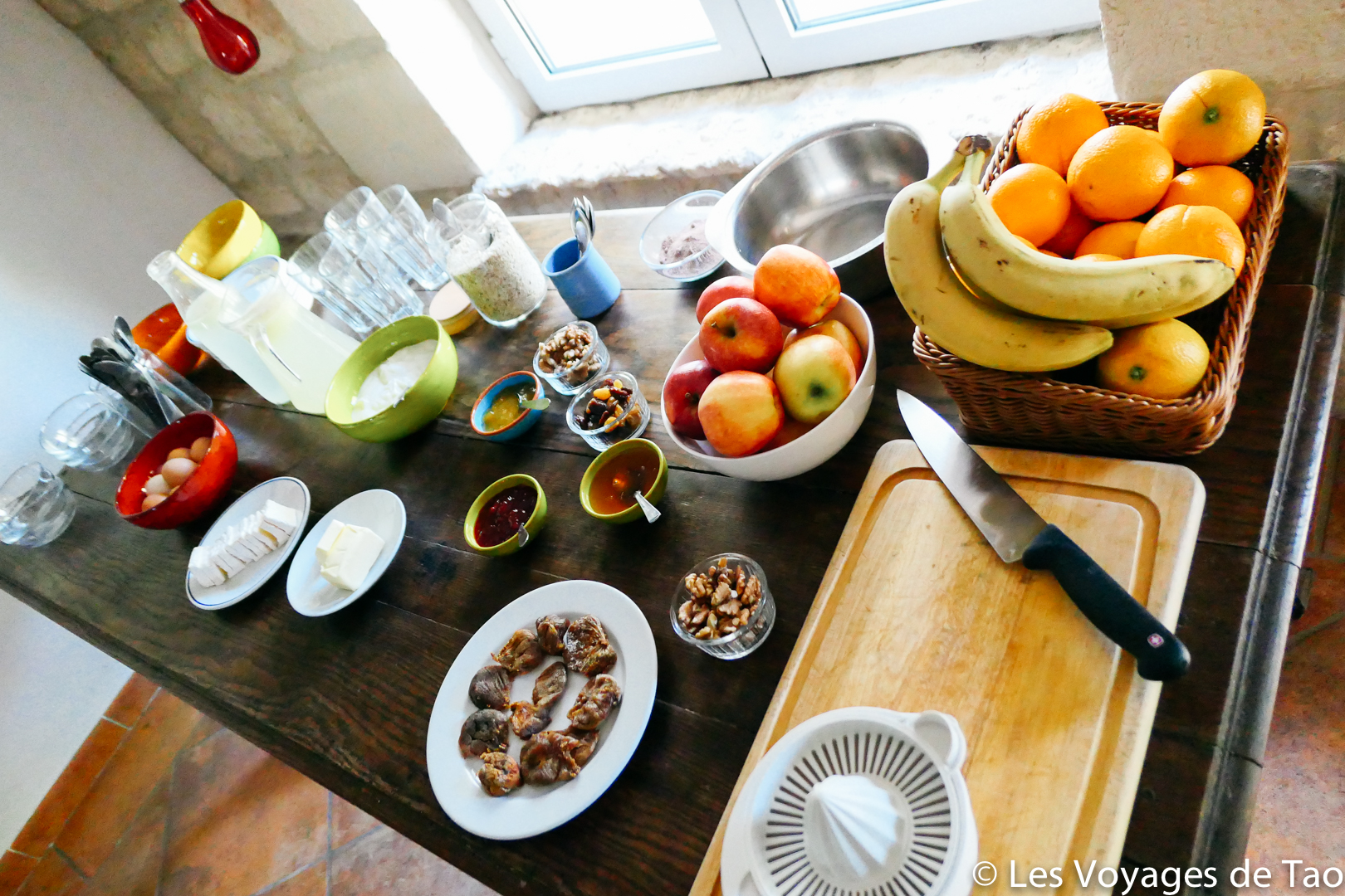 Les gérants du Gîte nous ont vraiment bien accueillit, partageant les repas avec nous. Je dois souligner aussi que nous avons vraiment super bien mangé !!! A tel point que nous notions toutes les recettes ! Mention spéciale pour le petit déjeuner, après une belle pratique de Yoga, cette table était juste parfaite.