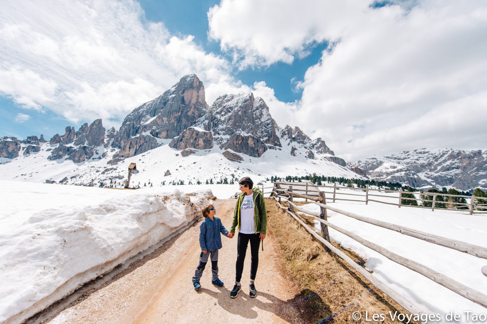 Nous avons vu les points principaux mais nous avons peu marcher, la neige rendant quand même peu accessible certains endroits mais aussi par manque de temps. Si vous pouvez prévoir au moins deux semaines dans les Dolomites c’est idéal.